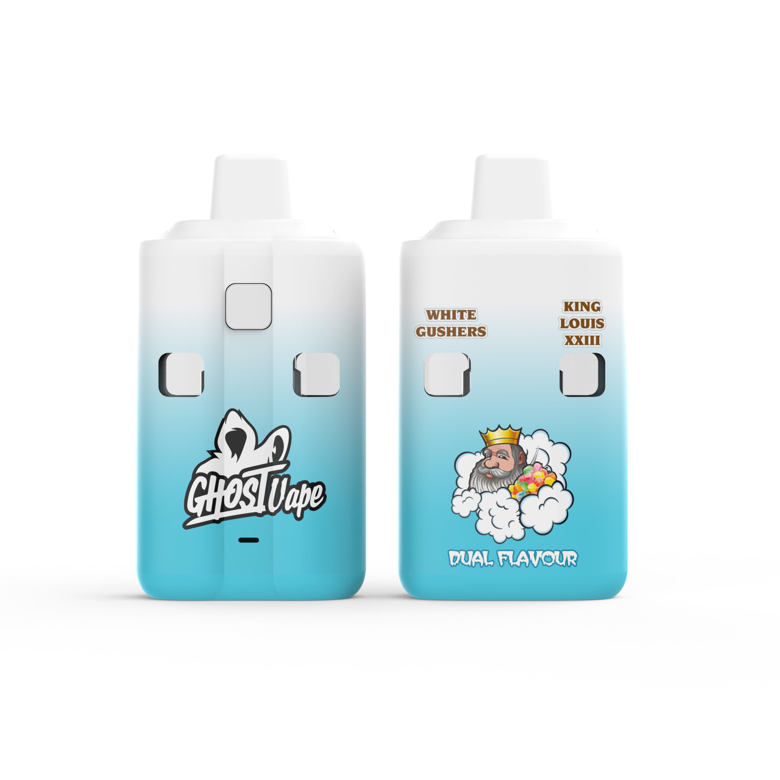 Discover the ultimate vaping experience with the Ghost Vapes Dual Flavor Delta-9 Distillate THC Vape, featuring 6 grams of premium Delta-9 THC distillate split between two iconic strains—3 grams of White Gusher and 3 grams of King Louis XIII. This innovative vape allows you to easily switch between these two powerful flavors by simply moving the inhaler left or right, offering you unmatched versatility and control over your vaping session. Whether you’re in the mood for the fruity punch of White Gusher or the rich, earthy tones of King Louis XIII, Ghost Vapes delivers both in one sleek device.