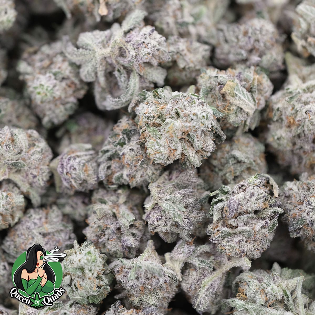 - Dense, resin-coated buds with vibrant color and strong aroma
