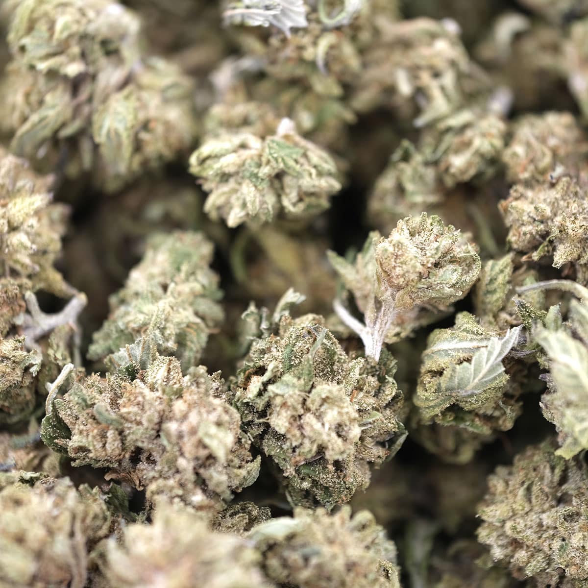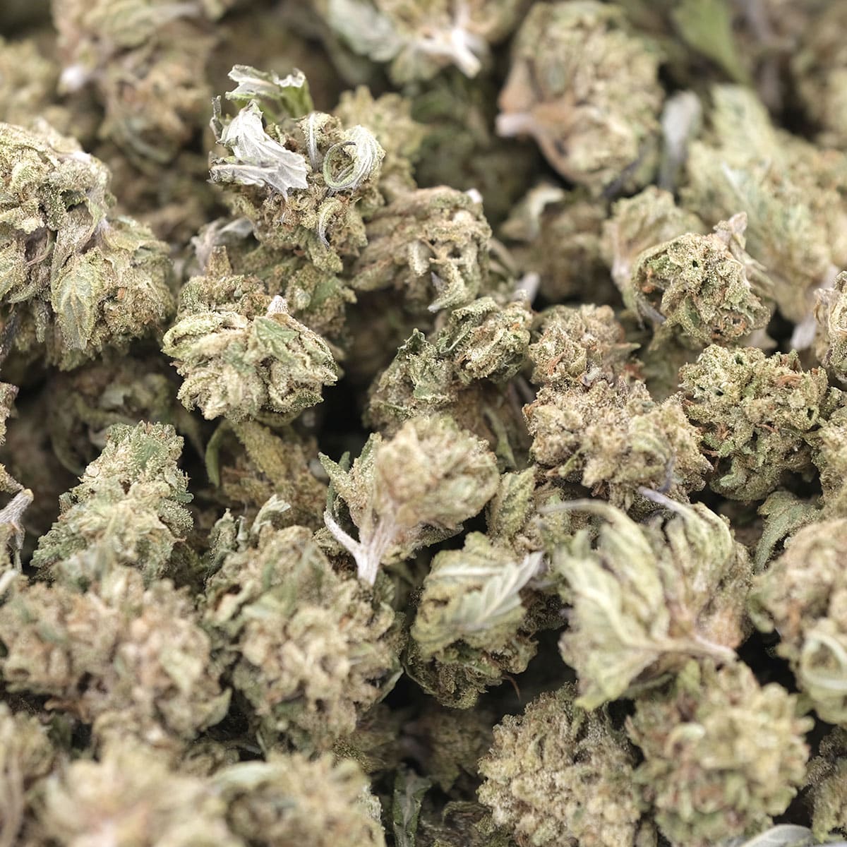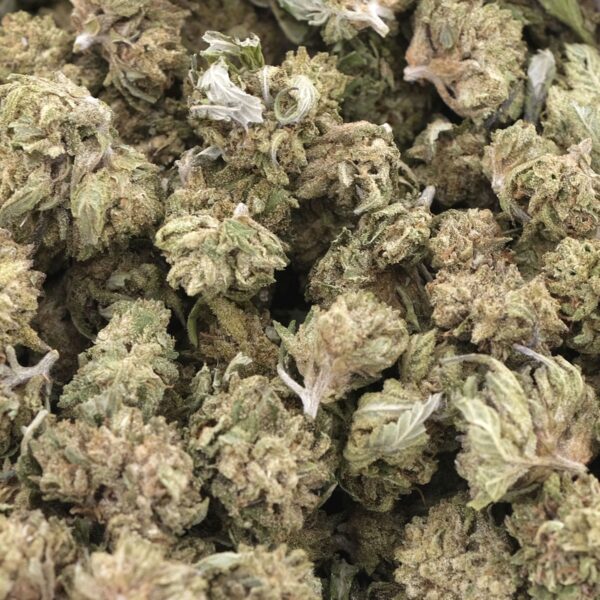 - Sticky trichome-covered buds with strong bag appeal