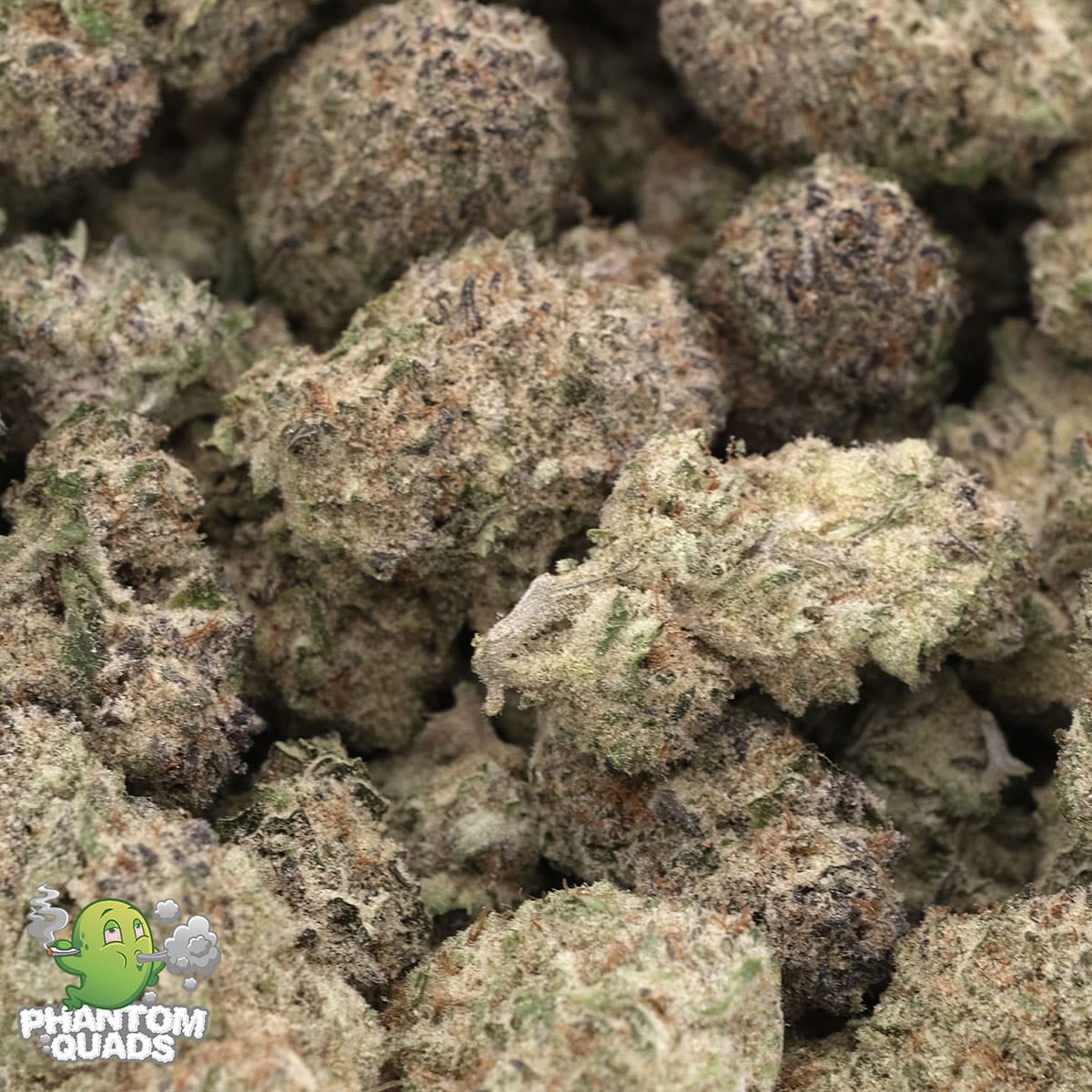 Visually, this strain features dense, frosty buds with vibrant green tones, bright orange pistils, and a sparkling layer of trichomes that highlight its premium quality.