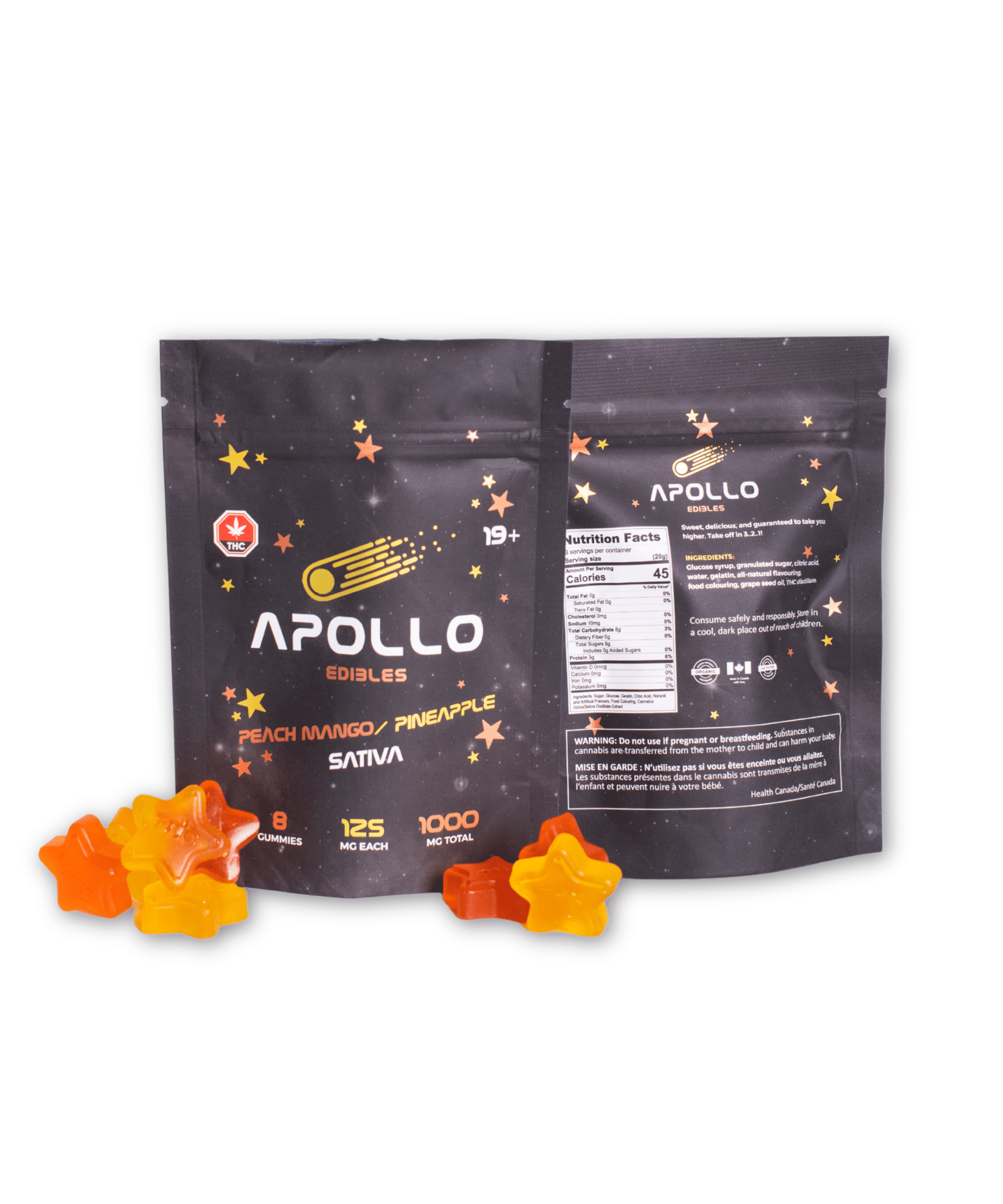 Blast off with high dosage Apollo Shooting Stars Gummies made locally in British Columbia, crafted with premium quality ingredients and top of the line THC oil. Take these Sativa dominant infused gummies for and amazing euphoric experience or for those suffering with medical conditions such as chronic pain, insomnia, and anxiety. Apollo gummies features explosive flavors and are easily dividable into 5 pieces for a wide range of tolerances. Take a star and get ready to enter another headspace!